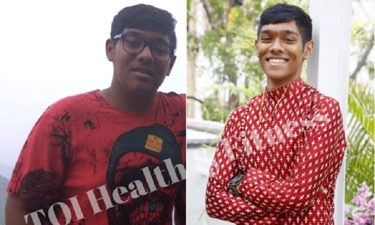 Sau 11 tháng, Bivhav đã giảm từ 106,5 kg (trái) xuống 60,5 kg. Ảnh: TOI Health and Fitness.