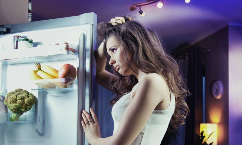 Chỉ ăn một chút vào buổi tối, và không ăn no trong hai giờ trước khi đi ngủ. Những người giảm cân nên ăn nhiều trái cây có tính kiềm, chẳng hạn như chuối và táo, thay vì các loại trái cây có tính axit tạo ra axit dạ dày. Uống sữa nóng không đường trước khi đi ngủ sẽ giúp đốt cháy lượng mỡ thừa trong cơ thể.