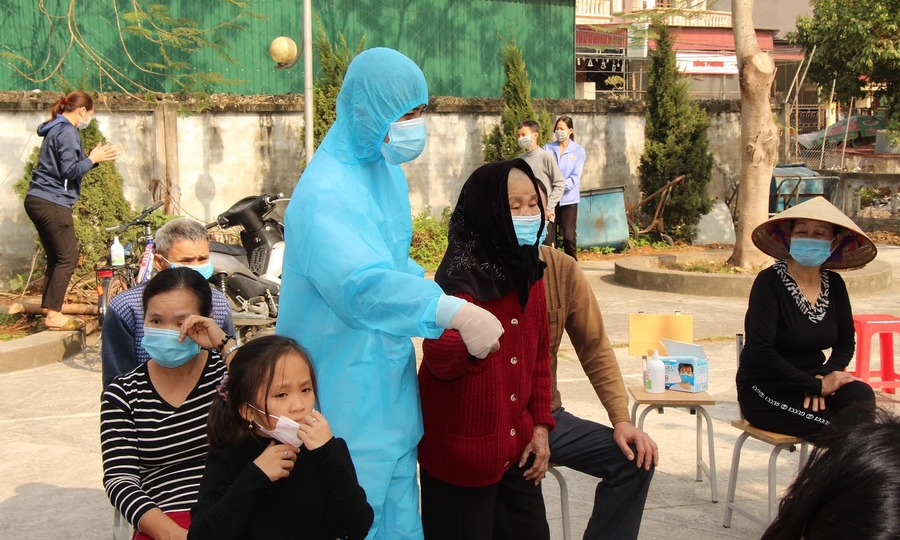 Lấy mẫu dân số nCoV ở Haiyang. Ảnh: Bộ Y tế .