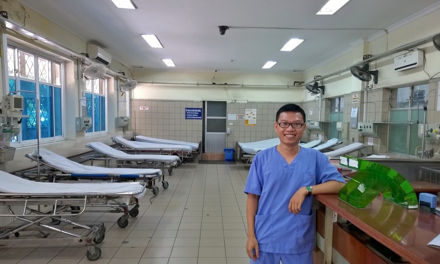 Bác sĩ Wu Dexiong hiện đang làm việc tại Khoa Cấp cứu A9 của Bệnh viện Bamai, Hà Nội. Ảnh của người dân đã cung cấp.