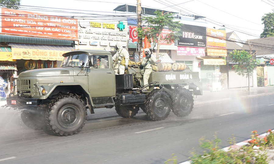 Sáng ngày 4/2, đơn vị chức năng đã tiến hành phun thuốc khử trùng trên đường phố Mott vào ngày thứ Năm. Hình: Nguyệt Triều
