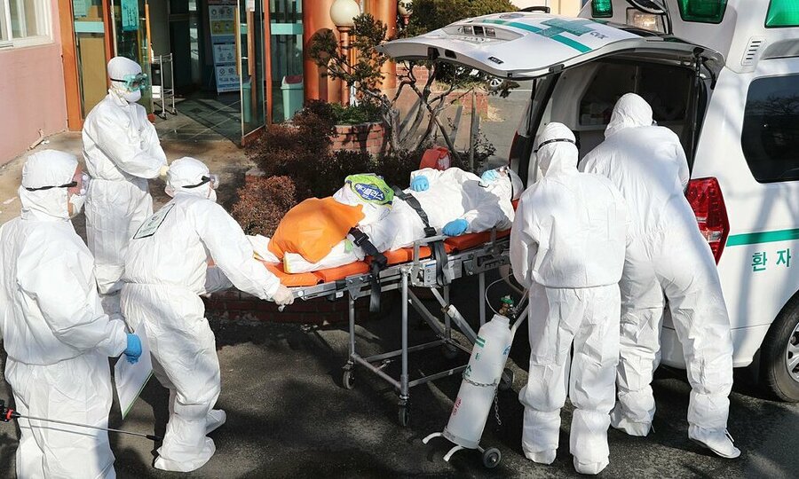 Bệnh nhân có một con đường riêng biệt, tất cả đều được bao gồm trong cùng một tòa nhà. Hầu hết trong số họ đã thử nghiệm NCOV. Theo các triệu chứng, nó phải được cách ly từ mỗi tầng hoặc phòng riêng biệt. – Bệnh nhân Covid-19 đã được chuyển đến Bệnh viện Daenam của Daegu. Ảnh: AFP