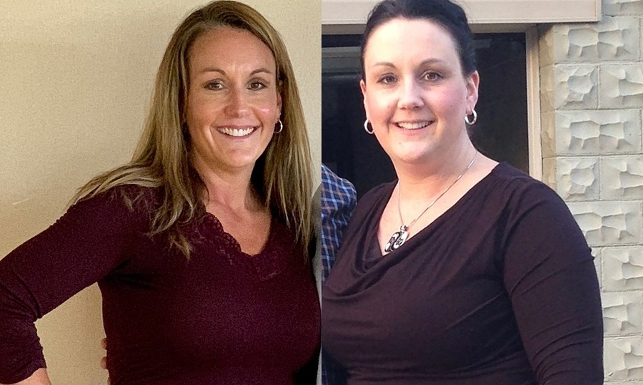 Jennifer Vincent sau khi giảm cân (trái) và gần 90 kg (phải). Ảnh: Phép lịch sự của Jen Vincent.