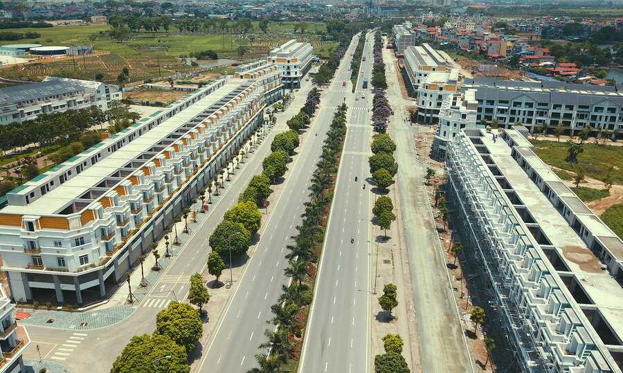 L avenue đã hoàn thành tổng mức đầu tư. Hơn 7,5 nghìn tỷ đồng, dài gần 30 km, rộng 140 m, gồm 6 làn xe và hai làn thu gom, có dải phân cách dài hàng chục mét.