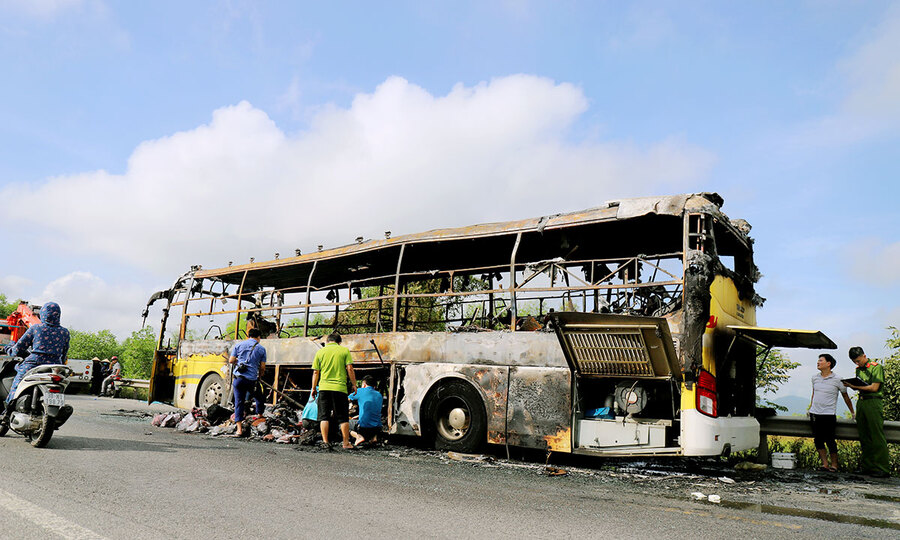 30 phút sau, ngọn lửa được dập tắt nhưng chiếc xe khách giường nằm bị thiêu rụi trần truồng, hành lý và buồng lái của hành khách cùng đồ đạc dưới gầm xe bị thiêu rụi.