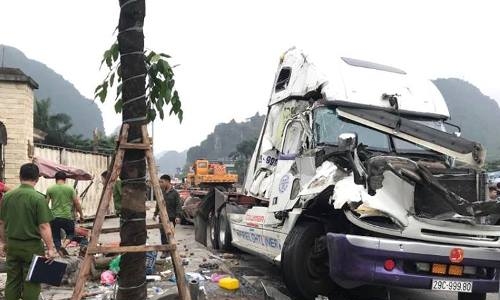 Khoảng 8h30 ngày 19/10, một xe container được cấp phép từ tuyến tránh Hạ Long về Hà Nội chạy đến ngã tư Quốc lộ 18A, phường 18A, huyện Quảng Sơn, Quảng Ninh.