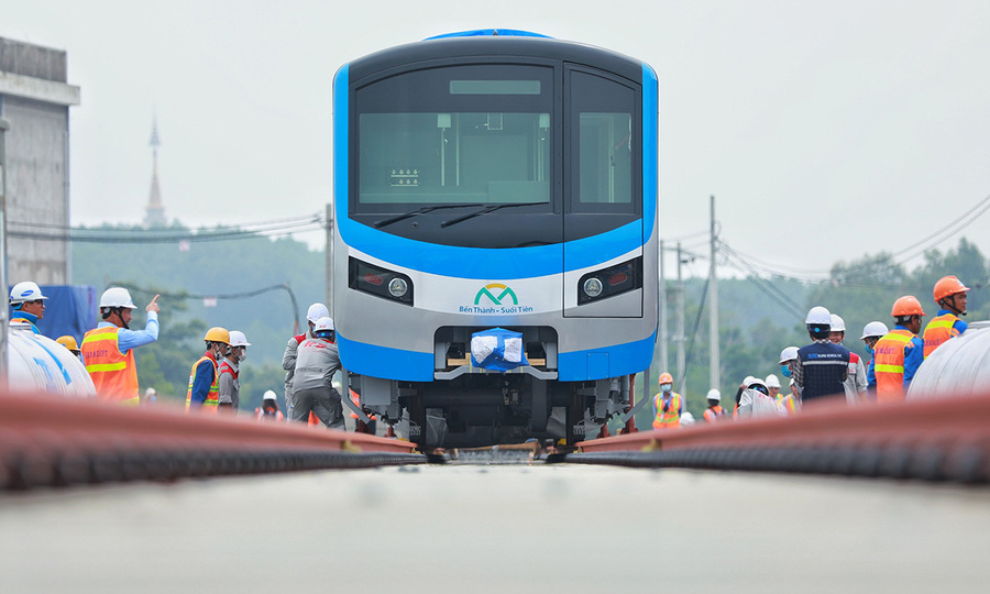 Lúc 9h30 ngày 10/10, hai cần trục có tải trọng 450 tấn và 250 tấn lần lượt hợp nhất 3 tàu điện ngầm số 1 (Honjo-Soytian), mỗi chiếc có chiều dài 21 m, rộng 3 m và cao. 4 m, nặng 37 tấn, xuống ga T1 kho Long Bình (sửa chữa, bảo dưỡng tàu). Ba chiếc xe tải được kéo với nhau bằng xe tải đặc biệt và lắp ráp thành một đoàn tàu hoàn chỉnh.