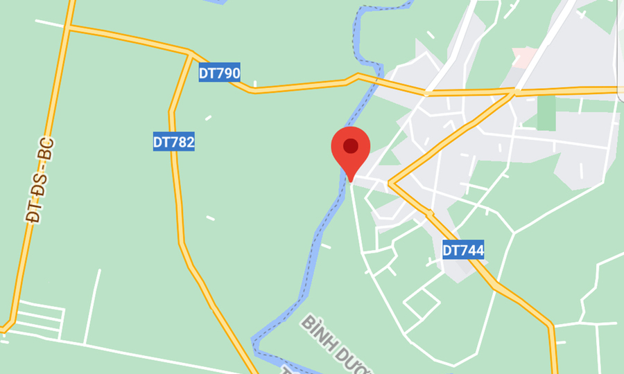 Ngày 12/10, UBND tỉnh Bình Dương đã khởi công xây dựng dự án cầu nối miền Tây tỉnh với miền Đông tỉnh Tây Ninh. – Cầu đường bộ và khu vực xây dựng (chấm đỏ) nối hai tỉnh Bình Dương và Tây Ninh. Hình: Google maps .