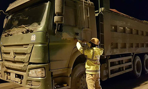 Cảnh sát đã phong tỏa và đưa xe tải về trụ sở trong 7 ngày. Ảnh: Sơn Dương