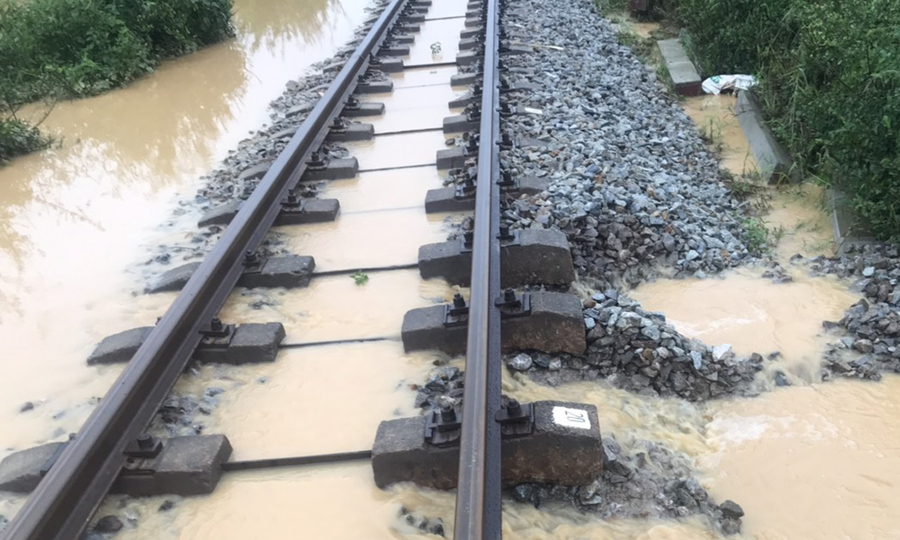 Ông Trần Thiện Cảnh, Phó tổng giám đốc Công ty Đường sắt Việt Nam cho biết, mưa lũ làm nhiều đoạn đường sắt Quảng Bình, Quảng Trị bị sạt lở khỏi đường ray, nước ngập, cây đổ. .