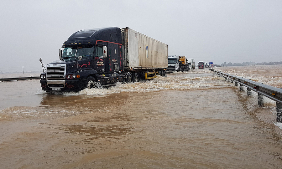 Quốc lộ 1A, đoạn qua TP Hà Tĩnh hoặc tuyến tránh đã hình thành đường ngập sâu nhưng CSGT chỉ cho phép các phương tiện sắc nhọn như xe khách, xe tải lưu thông một chiều Bắc – Nam.