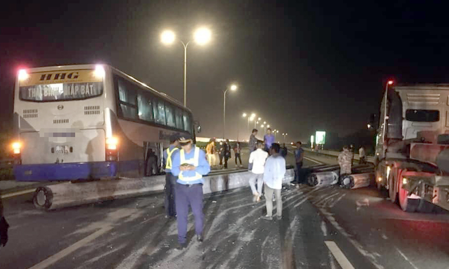 Đội CSGT số 3 đã phân luồng người, khoanh vùng hiện trường, bàn giao vụ tai nạn cho Công an huyện Ding Turrain. -9 giờ tối. Sáng cùng ngày, các cột điện thoại đã di chuyển sạch sẽ trên vỉa hè, các phương tiện trên cao tốc đi lại bình thường. Ảnh: Deguang-Feng Song