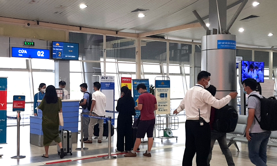 Sáng 6/11, đại diện Cảng hàng không Cam Ranh cho biết, thông tin chuyến bay sẽ được cập nhật bằng tiếng Việt và tiếng Anh trên màn hình điện tử trong nhà ga. Màn hình sẽ hiển thị trạng thái, chuyến bay lên máy bay, chẳng hạn như chuyến bay bị hoãn hoặc bị hủy. Bảng điện tử sẽ được đặt ở nơi thuận tiện cho hành khách xem. -Đại diện sân bay khuyến nghị hành khách theo dõi màn hình để cập nhật thông tin chuyến bay và hiển thị tại cổng lên máy bay theo quy định về thời gian. – Hành khách xuống sân bay Cam Ranh. Ảnh: Anh Duy .
