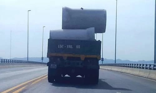 Đón khách bằng “xiếc” cống bê tông lộn xộn đoạn qua cầu Tân-Cát Hải. Ảnh: Giang Chinh .