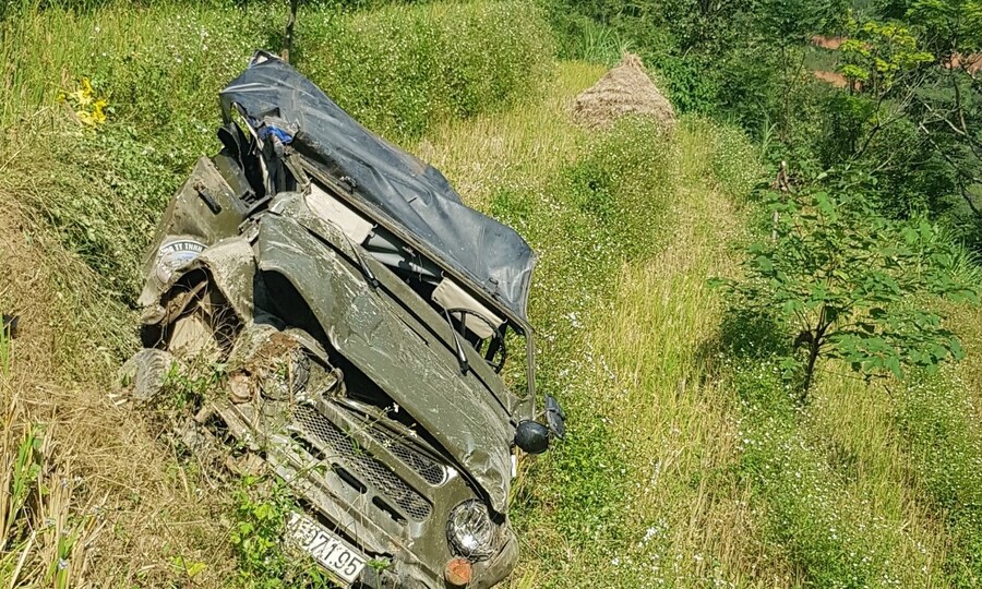Xe Uaz ở trên vách đá. Ảnh: Cục CSGT-6 hành khách bị văng ra ngoài khi xe lao xuống vực. Bà Nguyễn Thị Hoài Thương (47 tuổi), bà Nguyễn Thị Phương Dung (50 tuổi) và bà Nguyễn Thị Minh Tuyết (58 tuổi, cùng ngụ Đà Nẵng) tử vong ngay sau đó. Tài xế bị thương nặng, 3 người còn lại bị gãy tay chân, hiện cơ thể đã ổn định. 1/2021, người lái xe đã có giấy phép lái xe. Sở đã cử lực lượng đặc nhiệm đến hiện trường, phối hợp với Công an thành phố Hà Giang điều tra vụ tai nạn, đồng thời lấy mẫu máu xét nghiệm nồng độ cồn và ma túy của tài xế. Ảnh: Phòng CSGT-Vụ tai nạn xảy ra trên con đường đất hẹp, bên ngoài chỉ có một ô tô và hai bên đều chật cứng. Để đi dọc sông Nho Quế, ô tô phải đổ dốc. Không có tín hiệu điện thoại trong khu vực này.
