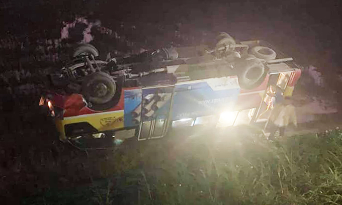 Sau va chạm, xe buýt lao sang phải, ngã xuống ruộng rồi quay đầu lại. Trên xe có 8 người gồm 6 hành khách, tài xế và phụ xe, rất may không có ai bị thương. Những người này sau đó đã được chở trên cùng một tuyến bằng xe buýt.