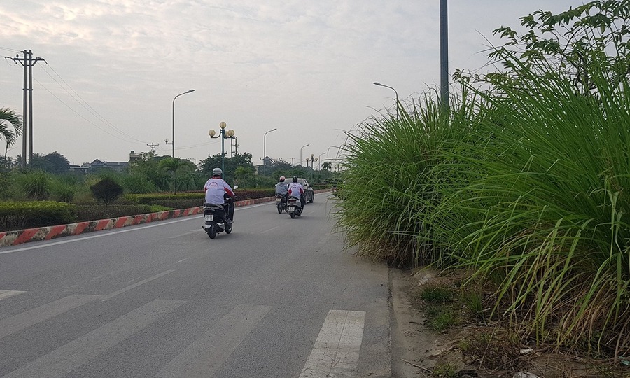 Những đám lau sậy dày của vỉa hè CSEDP đi qua con đường ở quận Quảng An vẫn chưa được cắt tỉa. Ảnh: Lê Hoàng.