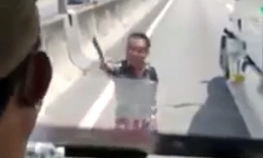 Sáng 8/9, Tổ tuần tra kiểm soát giao thông thuộc Cục CSGT Bộ Công an phối hợp với Thai Ping Fan (29 tuổi, quê Longan) – tài xế cắt kính chiếu hậu. Tài xế dùng dao đe dọa tài xế sau khi chém đứt kính chiếu hậu của xe khách. Đoạn băng ghi hình hành khách quay lại trên xe buýt.