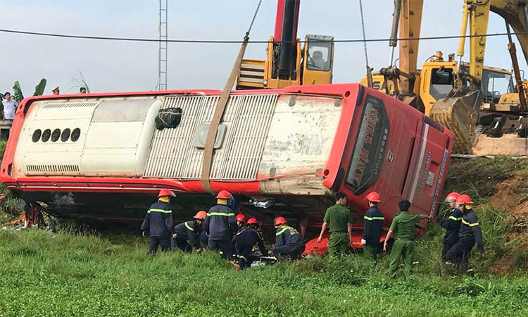 Vụ tai nạn xảy ra trên đường Hồ Chí Minh đoạn qua thôn Xia Zhuang, xã Sun Zhuang, huyện Hoàng Sơn. Chiếc xe khách hai tầng ở Nghệ An chạy hướng Nghệ An-Lào, đến địa điểm trên thì ngã người nằm xuống ruộng, cách đường xe chạy khoảng 2m. Chiếc ô tô bị lật dưới ruộng. Một hành khách cho rằng mọi người va quệt vào nhau, la lối thoát ra ngoài. Ảnh: Đ.H-24 người gồm hành khách và thuyền viên ngồi trong và phụ xe một phen hú vía. Huang Wenxiang bị mắc kẹt dưới ghế. Ba giờ sau, lực lượng cứu hộ mới cắt được chiếc ghế để giải cứu nạn nhân và đưa đi bệnh viện cấp cứu nhưng không qua khỏi.