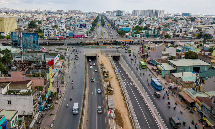 Hầm chui nút giao thông An Sương thông xe ngày 15 tháng 7. Nhiếp ảnh: Quỳnh Trân .—— Sáu công trình này Tổng vốn đầu tư hơn 1.740 tỷ đồng, trong đó hầm chui tại ngã tư Anzu (khu 12, Hóc Môn) lớn nhất, lên tới 514 tỷ đồng, ông Phúc cho biết: “Tại nút giao vẫn còn nhiều yếu tố, như việc cải tạo vỉa hè. , Các mảng xanh, đường vào vòng xoay sẽ hoàn thành vào tháng 9. “Dự án đường gom quốc lộ 22 qua đường Trường Chinh, có tổng chiều dài 385 m sẽ chính thức thông xe. Dự án hoàn thành sẽ hình thành nút giao thông 3 tầng (đi ngầm) Đất nền, cầu cạn) nhằm giải tỏa áp lực giao thông cho 3 trục huyết mạch cửa ngõ Tây Bắc TP.HCM (là Quốc lộ 1, Quốc lộ 22 và đường Trường Chinh). Theo ông Phúc, đơn vị hiện đang đẩy nhanh tiến độ 3 dự án khác là Bao gồm: xây dựng Cầu thép tạm tại Anfudong (Khu 12); cải tạo, cải tạo đường Trần Văn Giàu tại ngã ba Nguyễn Cửu Phú (huyện Bình Chánh) và Tỉnh lộ 10; quy hoạch trọn gói – dự án cải thiện môi trường nước đô thị (Không. Giai đoạn 2) Dự án hoàn thành trong tháng 9, tổng mức đầu tư vượt 776 tỷ đồng.