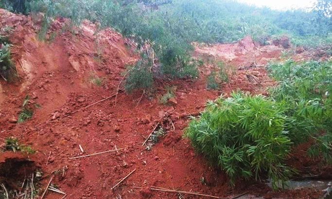 Vào ngày 17 tháng 11, một vụ lở đất đã xảy ra trên núi. Ảnh: Đại Hiệp.