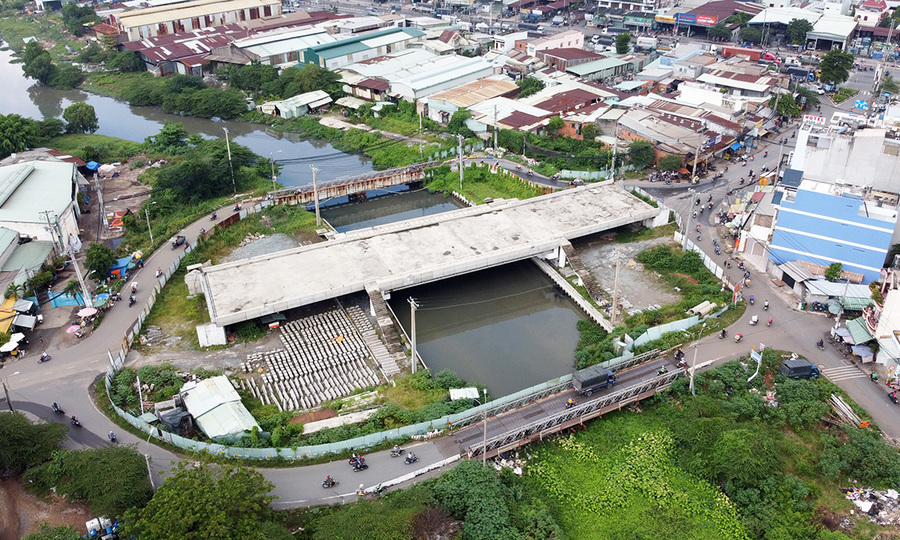 “Công trình này bỏ hoang khoảng hai năm nay, có người dỡ rào dựng lều dựng tạm”, anh Lê Văn Phát, nhà gần công trình cho biết. Được biết, do dự án chậm tiến độ nên người dân vẫn phải đi qua hai cây cầu sắt liền nhau và thường xuyên bị kẹt xe, tai nạn giao thông.