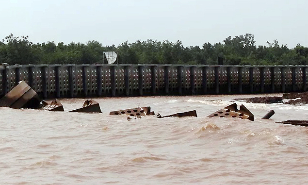 Ông Hoàng Đức Thảo, Tổng giám đốc Tổng công ty Khoa học và Công nghệ Việt Nam, cho biết sở đang sửa chữa phần kè bị hư hỏng. Ảnh: Datawrapper .