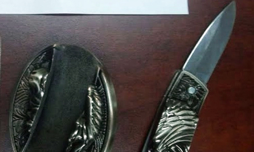 Lực lượng an ninh hàng không tìm thấy một con dao găm sắc nhọn trên băng chuyền. Ảnh: CTV .