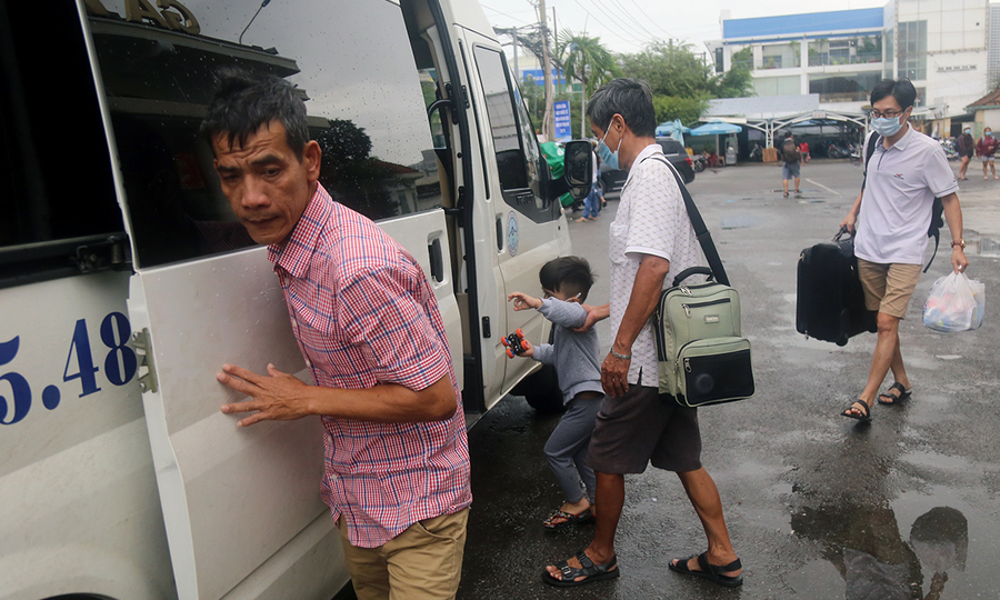 Hôm qua, hơn 1.000 hành khách bị mắc kẹt tại ga Nha Trang, Nha Trang đã được ô tô chạy qua điểm ngập để đến điểm đón tiếp. Ông Sơn nói: “Nếu hành khách không chạy xe, chúng tôi phải trả lại quãng đường còn lại.” Ga Nha Trang đã phải thuê xe đưa khách vào đoạn đường sắt bị ngập. , 01 tháng 12. Ảnh: Xuân Ngọc .
