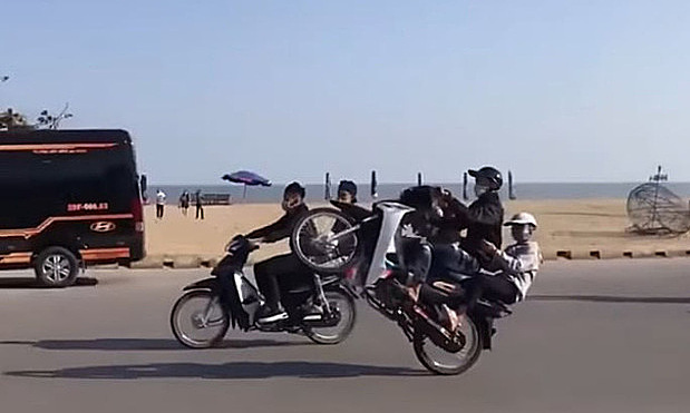 — Trước đó, vào lúc 2 giờ chiều ngày 6 tháng 12, hơn một trăm thanh thiếu niên đã tụ tập năm mươi xe máy trên đường Hồ Xuân Hương, thị xã Sầm Sơn. Một nhóm “quái xế” vừa chạy xe vừa la lối, xóc nảy gật đầu. Trong nhóm này có nhiều xe máy khác chụp ảnh, chụp ảnh và vỗ tay ở làn đường ngược chiều.