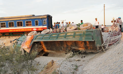 Tàu SE19 va chạm với xe chở đá ở Thanh Hóa. Ảnh: Lê Hoàng.