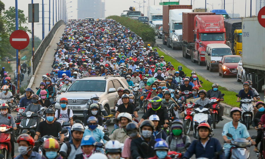 Dòng xe máy băng qua cầu Rạch Chiếc trên Xa lộ Hà Nội. Ảnh: Quỳnh Trân .