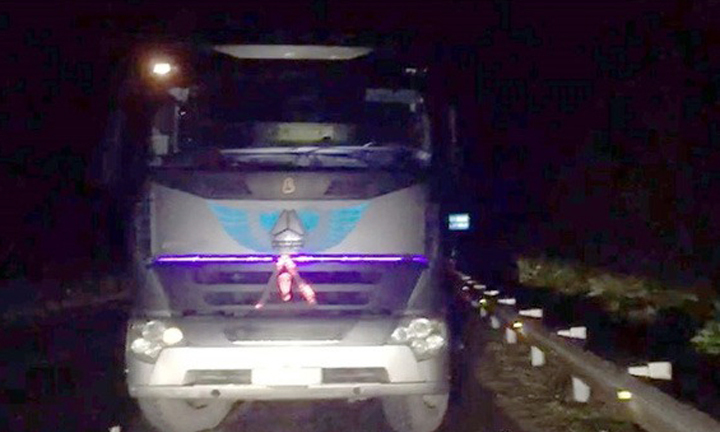 Một xe tải chạy ngược chiều trên cao tốc Nội Bài – Lào Cai đã bị cảnh sát bắt giữ. Ảnh: Cục CSGT