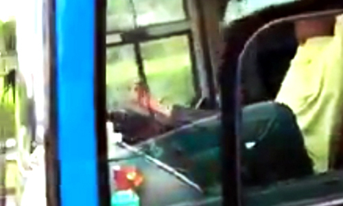 Người lái xe điều khiển vô lăng bằng chân. Hình ảnh: trích từ video.