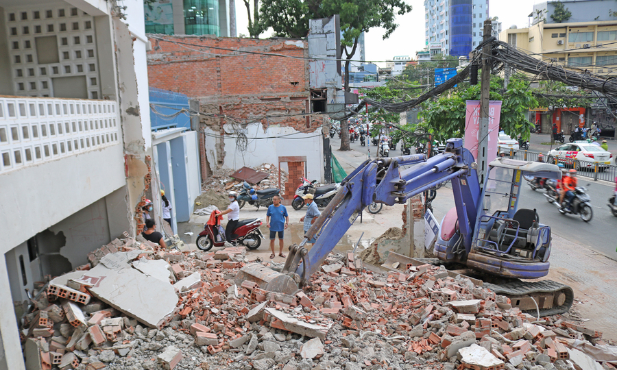 Dự án kéo dài trên 6 khu vực: 1, 3, 10, 12, Tân Bình và Tân Phú, với tổng diện tích giải phóng mặt bằng hơn 250.000m2 và có 603 trường hợp bị ảnh hưởng. Hiện đã giao được 450 lô đất, đạt tỷ lệ gần 75%. Theo chủ đầu tư, do chính sách đền bù tại Khu 3 nên tiến độ GPMB năm nay không thể hoàn thành theo kế hoạch, chưa bố trí được kinh phí đền bù cho các năm. Ngày 27/11, mặt tiền đường Cách Mạng Tháng Tám (khu 1) được phá bỏ, đào sâu và nổi lại để hình thành ga Tao Đàn trên tuyến metro số 2. Ảnh: Gia Minh .