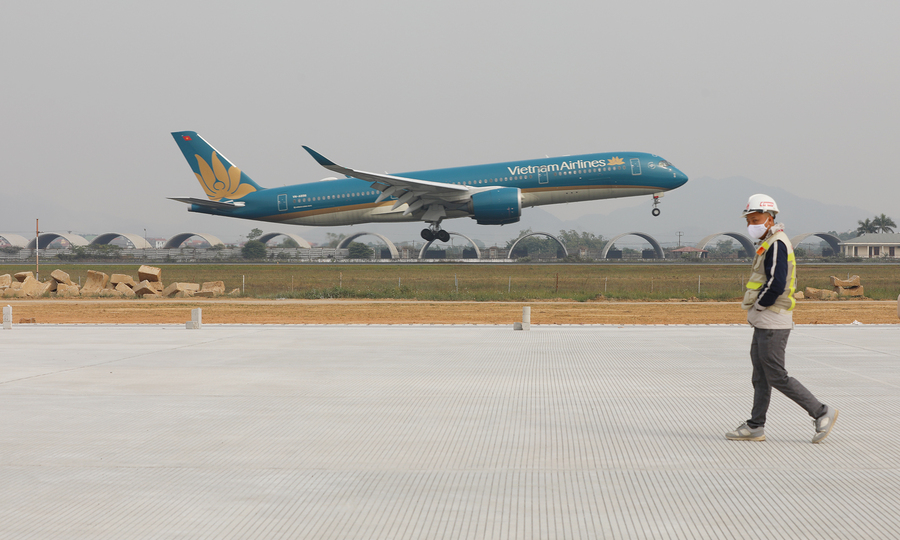 Biển báo cấm được đánh dấu trên đường nhẵn sau khi đã chà nhám, đổ bột trét và làm sạch để ngăn các phương tiện đi vào. – Dự án đang hoàn thiện các phần việc cuối cùng và hoàn thiện các thủ tục để cất hạ cánh và đưa vào vận hành tạm thời 3.000 m đường băng B1 để tàu bay mã C cất cánh, đường băng 1A vẫn hoạt động bình thường. Đến tháng 7 năm 2021, đường băng 1B và các đường lăn nối đã hoàn thành theo yêu cầu. Tiếp theo, đường băng 1A sẽ được đóng cửa để bảo trì và khắc phục sự cố trước cuối năm 2021. Trong vòng sáu tháng sau Tết năm 2021, giai đoạn đầu tiên sẽ vận hành đường băng 1B, sau đó sẽ tiếp tục hoàn thành cho đến Tết Nguyên đán năm 2022.