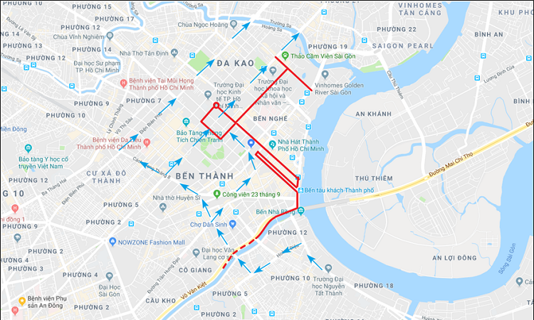 Lộ trình thay thế: Nguyen Hucan-Deng Dechang-Ding Tianhuang-Nguyen Thi Ming Khai, và ngược lại; hoặc Lê Duẩn-Ton Duktang-Nguyen Hu Can và ngược lại. Từ 4 giờ đến 9 giờ sáng ngày 8/12, cấm tất cả các phương tiện lưu thông trên các tuyến đường sau: Lê Duẩn (từ Đinh Tianhuang đến Kansas ở Paris, từ Nangui Caingue đến Kansas ở Paris), Fan Wuge (Từ Lê Duẩn đến kiến trúc quốc tế), Võ Văn Tần (từ International Plaza đến Nam Kỳ Khởi Nghĩa), Nam Kỳ Khởi Nghĩa (từ Võ Văn Tần đến Lê Duẩn), Công xã Paris, Đồng Khởi (từ đường Tôn Đường Đức bắt đầu); Tôn Đức Thắng (Nguyễn Hữu Cảnh đoạn Cầu Khánh Hội).