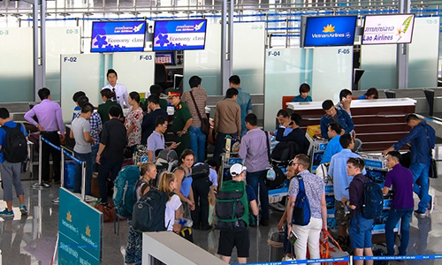 Hành khách làm thủ tục tại sân bay hàng ghế trong. Ảnh: Đoàn Loan