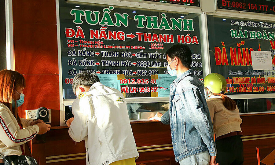 Tại bến xe trung tâm Đà Nẵng chiều 1/2, nhiều người đến trả vé. Ông Trần Xuân Thành, Giám đốc Công ty TNHH Vận tải Tuấn Thành (Nhà xe Tuấn Thành đường Đà Nẵng-Thanh Hóa), cho biết, năm nay lượng khách mua vé Tết đã giảm 50% so với năm ngoái (xấp xỉ 100 khách. vé / ngày).