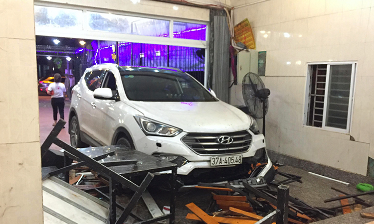 Trước 7h45 ngày 9/9. 19, nhiều thực khách đang ngồi nhậu ở quán 1A trên quốc lộ đoạn qua xã Kỳ Liên (TP Kỳ Anh) thì hốt hoảng nhìn thấy một chiếc ô tô Hyundai Santa Fe từ ngoài lao vào. Bàn bên ngoài chạy không kịp đã bị ô tô tông vào bệnh viện Đa khoa Keian cấp cứu, 2 người bị kéo lê dưới gầm xe, hiện 1 người bị thương nặng đã được chuyển đi cấp cứu. Bệnh viện hạng.