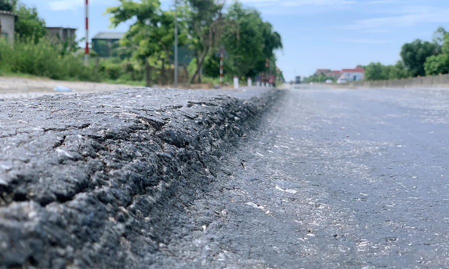 Sự chảy xệ của bánh xe xuất hiện theo hai hướng, và nhiều phần nhựa cao tới 3 đến 5 cm, với độ sâu từ 10 đến 15 cm và độ sâu sâu. Một số điểm trông rộng lớn, đường kính từ 30 đến 40 cm.