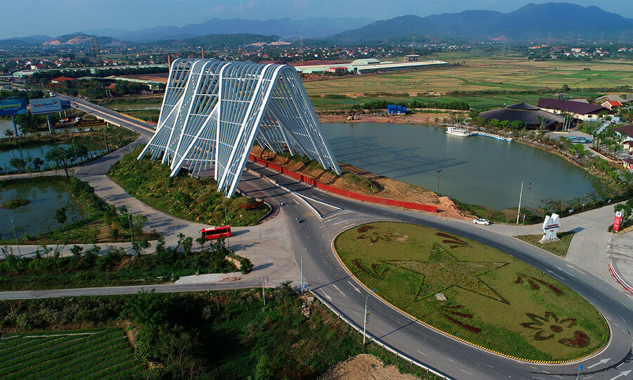 Băng qua khu vực tiếp tân của quận Đông Triều (thành phố Quảng Ninh)), cạnh Haiyang. Đây được coi là cổng thông tin và điểm sáng đầu tiên khi xe bắt đầu vào Quảng Ninh.
