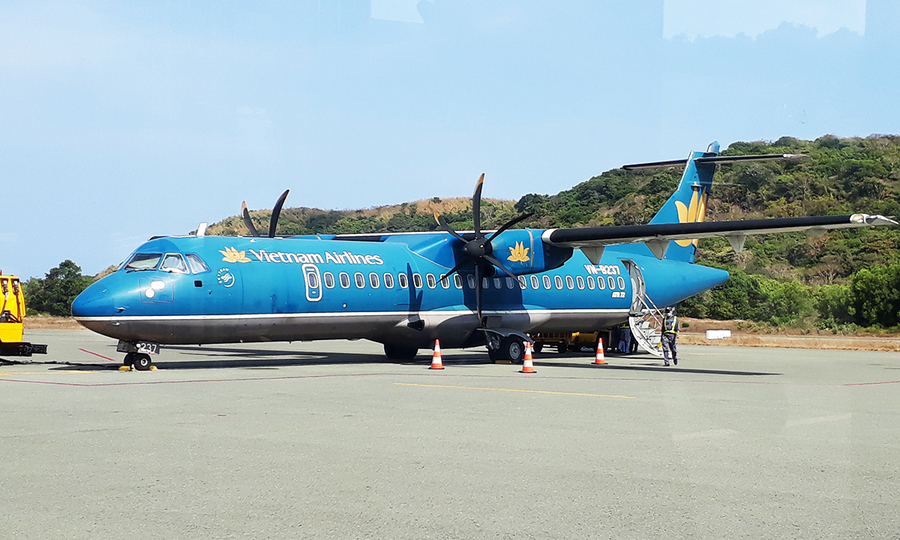 Hình ảnh chiếc máy bay trên đường băng tại sân bay Côn Đảo vào tháng 2: Tieu Long .