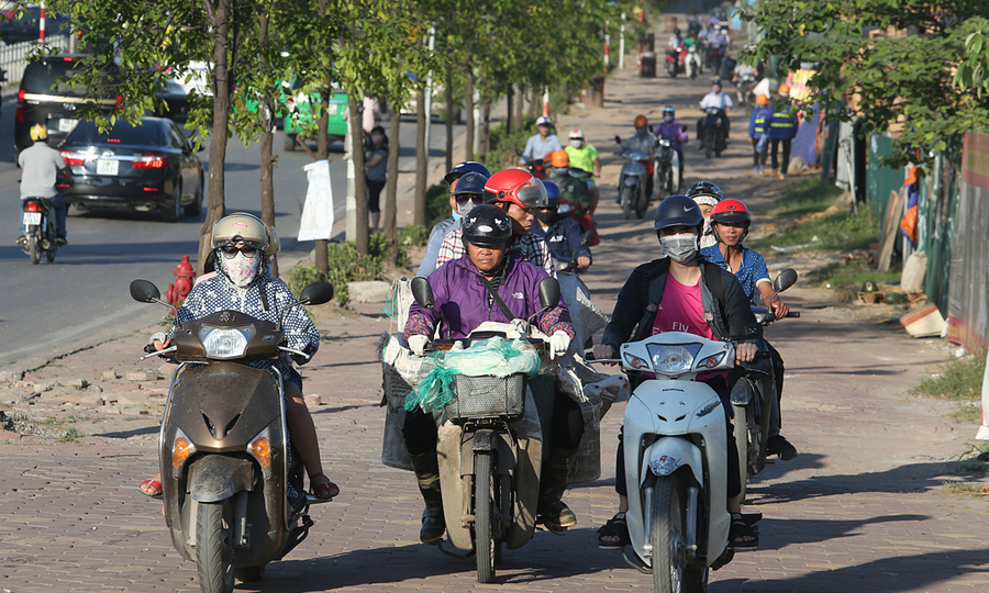 Lúc 5:30 sáng, mọi người lái xe từ Vạn Phúc đến Văn Lương cho đến khi đến ngã tư ở ngã tư. Các phương tiện trên vỉa hè rất dài và lấp đầy toàn bộ phần vỉa hè. -Tại 5:30 sáng, mọi người di chuyển từ hướng Văn Phúc sang Văn Lương, và ngã ba đi ngược chiều trên vỉa hè. . Một hàng dài vỉa hè lấp đầy toàn bộ lối đi bộ .