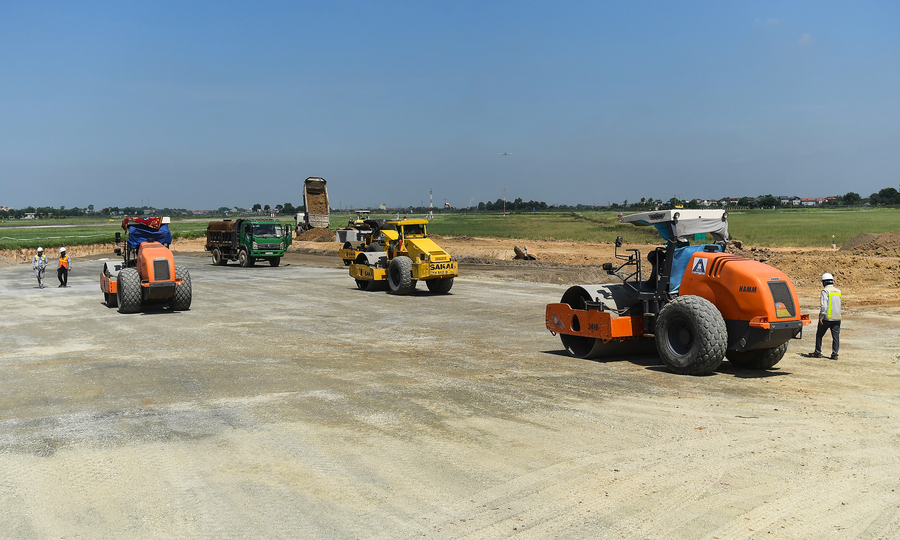 Công nhân đang xây dựng một hệ thống cống ngầm. Ông Đinh Huanglin, tổng giám đốc khu vực chuyến bay (sân bay Nội Bài) cho biết, cả đơn vị xây dựng và sân bay đều có những tiến bộ tốt trong việc đảm bảo an toàn bay và xây dựng dự án. .