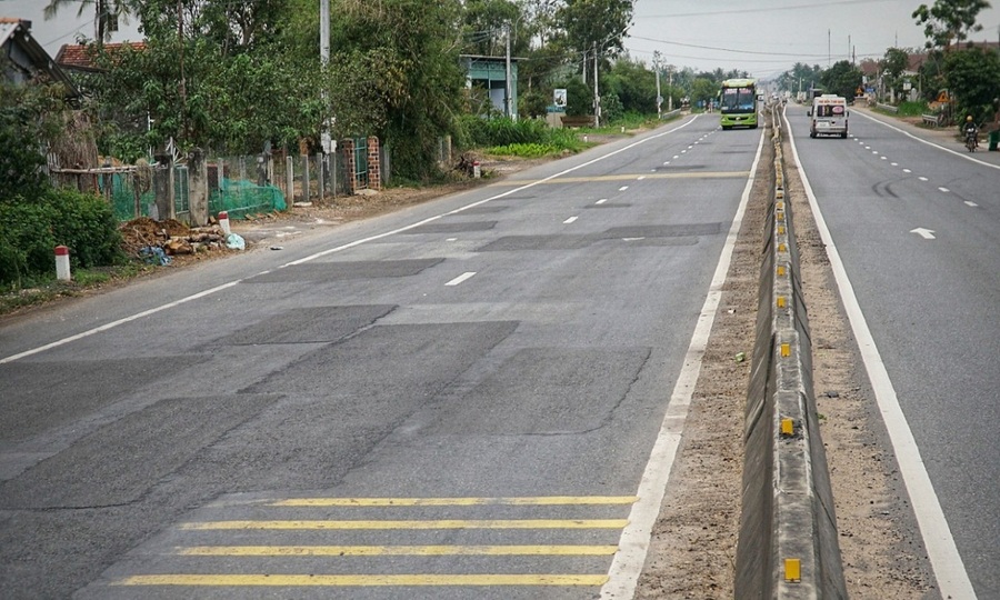 Quốc lộ số 1, đi qua tỉnh Bình Định, được sửa chữa không liên tục do hư hỏng.