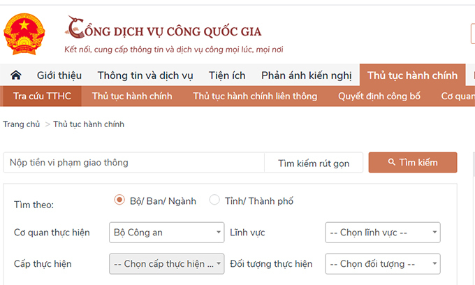 Vì vậy, người vi phạm giao thông có thể truy cập trang web https: // dichvucong. gov.vn/, kết nối với phần phạt vi phạm hành chính trong lĩnh vực giao thông đường bộ, số phút báo cáo vi phạm hành chính, họ và tên, số điện thoại, địa chỉ, vi phạm …, rồi chọn ngân hàng nộp phạt.