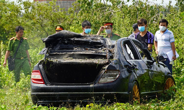Vào buổi sáng cùng ngày, mọi người tìm thấy một số xe hơi trong không gian mở bên cạnh kênh đào. Trong khi theo dõi các bánh xe, đơn vị chức năng phát hiện ra rằng Mercedes trải dài khoảng 10 mét dưới kênh. Tuy nhiên, nước trong kênh lúc đó quá sâu và rất khó để lấy lại. -Các cảnh sát lục soát xe. Ảnh: Hoàng Nam (Hoàng Nam.) – Theo điều tra sơ bộ, Phan Phú Dân An (25 tuổi) và vợ Trần Ngọc Hoa Trâm (24 tuổi, đang mang thai) và anh trai Phan vào khoảng 11 giờ tối ngày 30/1. Phú Dân Khánh (20 tuổi) lái xe karaoke ở thị trấn Mỹ Tho, khoảng 2 tuổi. Cách nhà 2 km.