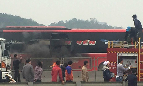 Vào khoảng 3 giờ chiều ngày 2 tháng 2, một chiếc xe buýt Thanh Hóa 48 chỗ đang lái xe trên Quốc lộ 1A và đến xã Hà Bình (Hà Trung, tỉnh Thanh Hóa) thì bất ngờ bốc cháy. Ảnh: Thanh Hóa.