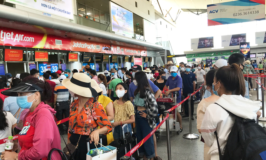 “Chính phủ chưa quyết định kế hoạch bay từ Đà Nẵng đến thành phố sau nửa đêm ngày 28 tháng 7. Nó sẽ.” Hành khách xếp hàng tại sân bay Đà Nẵng để làm thủ tục vào chiều ngày 26 tháng 7. Ảnh: Anh Duy.